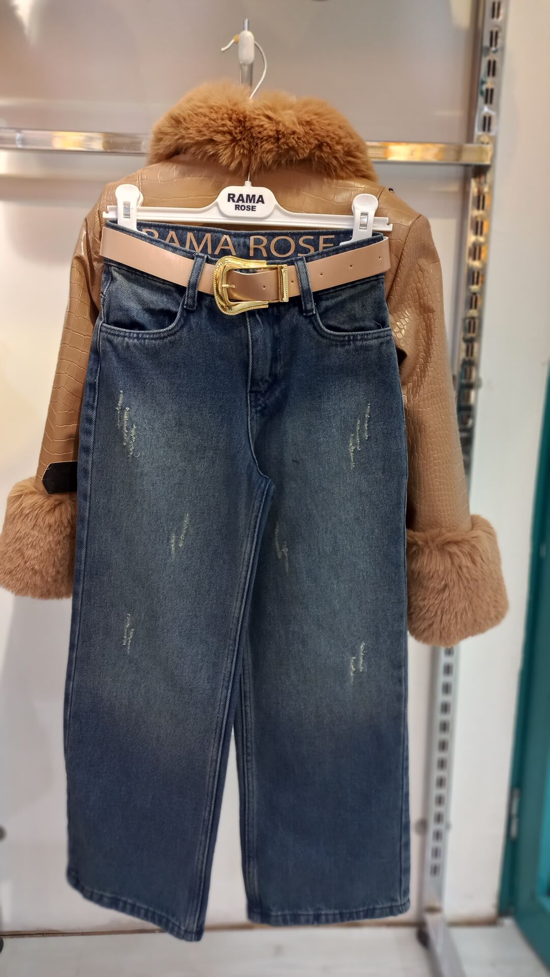 Rama Rose Kürk Takım Üçlü Set-Salaş Kot Pantolon